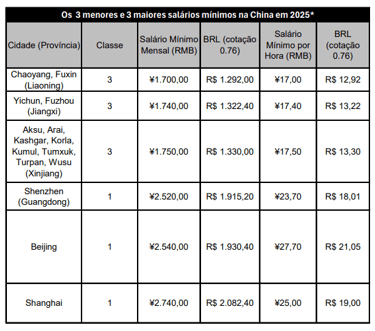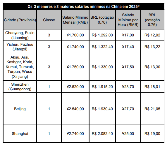 Ning, Xu. China Banking and Insurance News. (2025, 6 de abril). National minimum wage table released! Disponível em: https://baijiahao.baidu.com/s?id=1828662310302291614&wfr=spider&for=pc